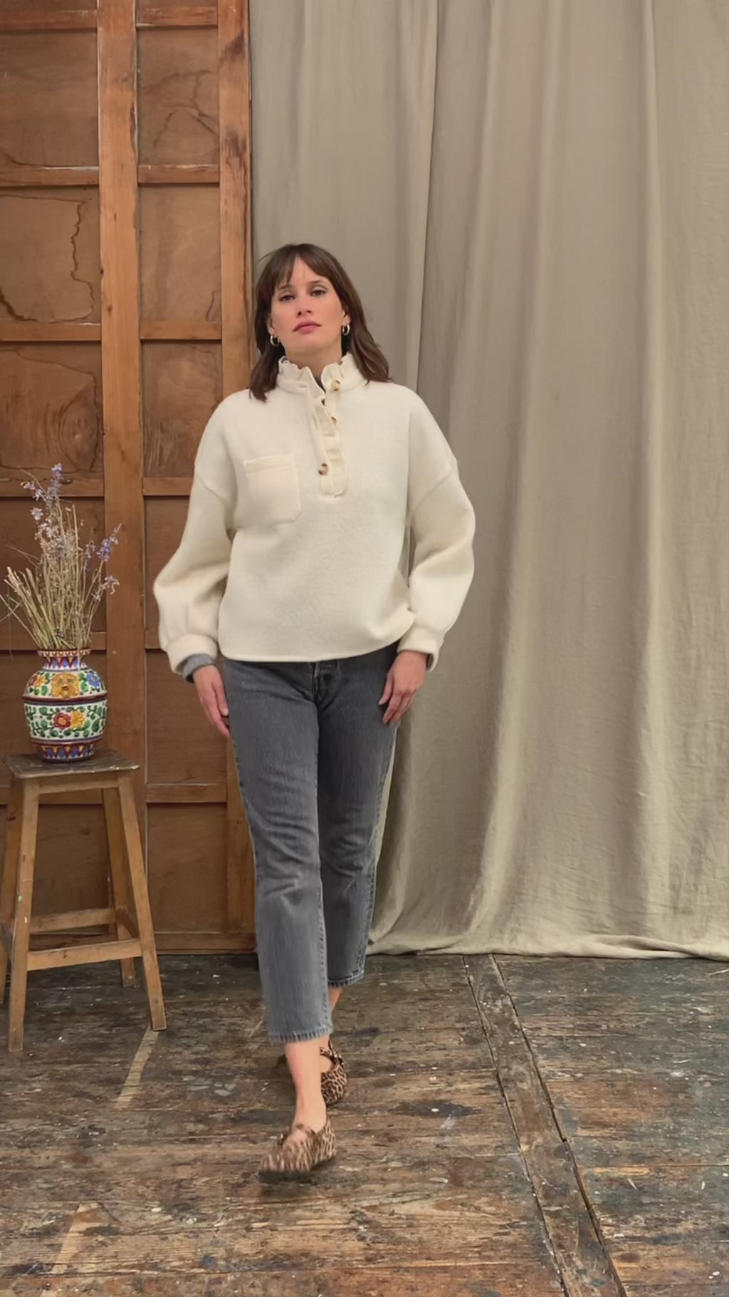 Confectionnée dans une laine bouillie parfaite pour l'hiver, cette pièce au charme rétro vous séduira par sa coupe ample et son col volanté, Une sur-chemise cosy et féminine, à porter par-dessus notre pull fin Monica.