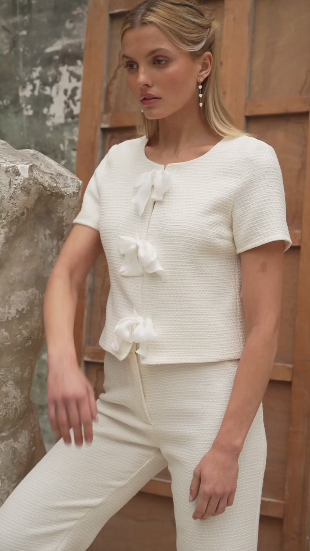 Une coupe simple assortie à des détails précieux : on adore le charme de cette pièce de caractère ! Doublé d'un voile de coton, il se ferme par 3 agrafes intérieures et 3 noeuds en mousseline de soie. Confectionné dans un jacquard tissé en région lyonnaise par une Entreprise du Patrimoine Vivant. On l'assortie au pantalon Félix assorti, ou à un jean, tout simplement !